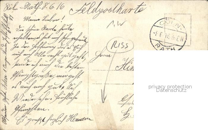 32508006 alte Postkarte Militaria Feldkueche Field Kitchen Cuisne Mobile Cucina da Campo Soldaten Kartoffeln schaelen Gruppenfoto WK1 Koeln postalisch gelaufen Feldpost Erhaltung siehe scans KatCode: 22300100100100