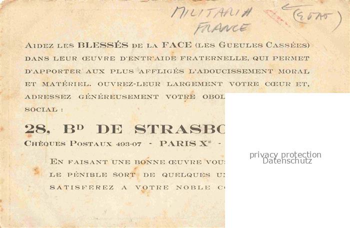 74030647 Militaria France Soldaten Blesses Face De Strasbourg postalisch nicht gelaufen Erhaltung siehe scans [IrynaD87] KatCode: 22300120120120
