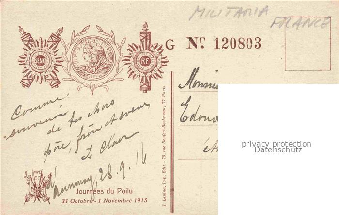 74033953 Militaria France Soldaten Journees du Poilu postalisch nicht gelaufen Erhaltung siehe scans [SanaeD93] KatCode: 22300120120120
