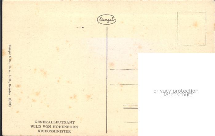 32290352 Militaria Generaele Stab Deutschland Kriegsminister Generalleutnant wild von Hohenborn postalisch nicht gelaufen Erhaltung siehe scans KatCode: 22300160160160