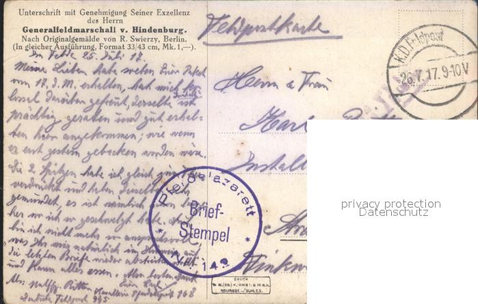 32296562 alte Postkarte Militaria Generaele Stab Deutschland von hindenburg postalisch gelaufen Feldpost Erhaltung siehe scans KatCode: 22300160160160