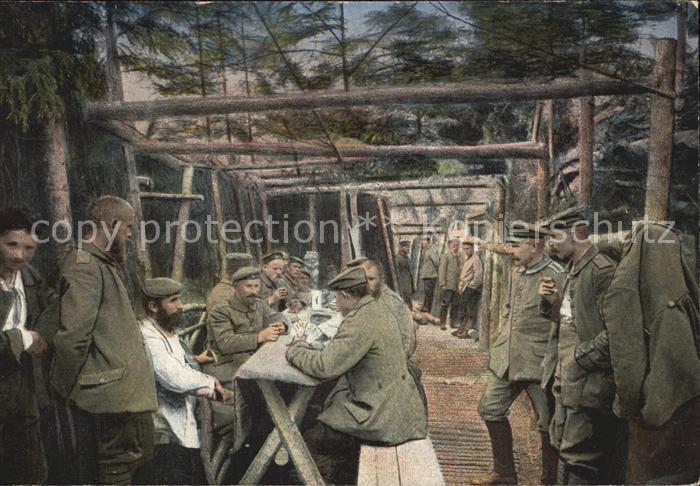 Militaria Kartenspiel im Unterstande Soldatenleben WK1