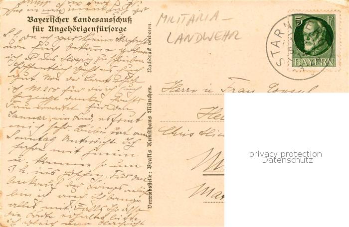 73882513 alte Postkarte Militaria Landwehr Brafls Kunsthaus Muenchen postalisch gelaufen Erhaltung siehe scans [NoemiOhl] KatCode: 22300270270270