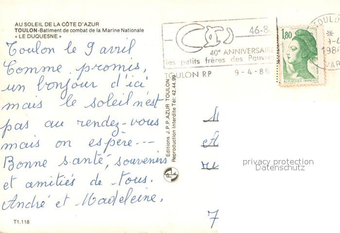 alte Postkarte Militaria Marine Toulon Le Duquesne postalisch gelaufen Erhaltung siehe scans [IrynaD87]