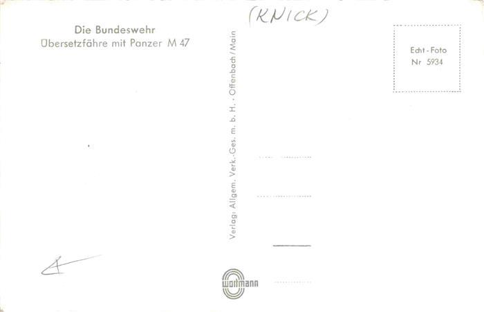 74013777 Militaria Panzer Tank Char d Assaut M47 uebersetzfaehre die Bundeswehr Offenbach/Main postalisch nicht gelaufen Erhaltung siehe scans [SanaeD93] KatCode: 22300360360360