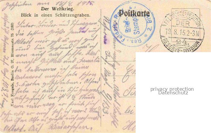 74029516 alte Postkarte Militaria Schuetzengraben Der Weltkrieg postalisch gelaufen Erhaltung siehe scans [IrynaD87] KatCode: 22300450450450
