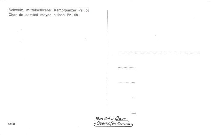 74025513 Militaria Schweiz Panzer Kampfpanzer Pz. 58 postalisch nicht gelaufen Erhaltung siehe scans [IrynaD87] KatCode: 22300440440440