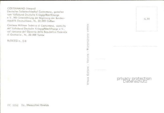72132006 Militaria Tod Costermano Verona Deutscher Soldatenfriedhof KatCode 22300490490490