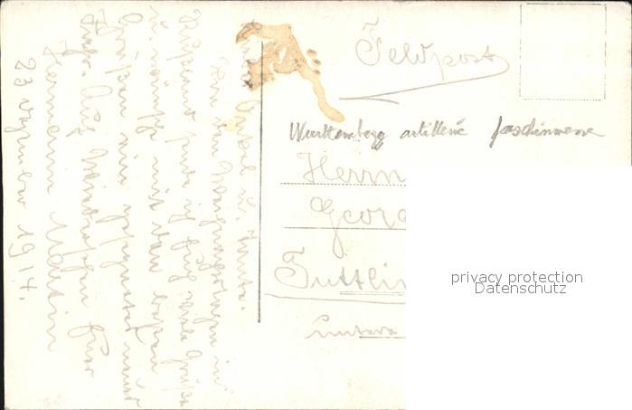 32501012 Militaria WK1 Artillerie Soldat Stahlhelm postalisch nicht gelaufen Erhaltung siehe scans KatCode: 22300540540540