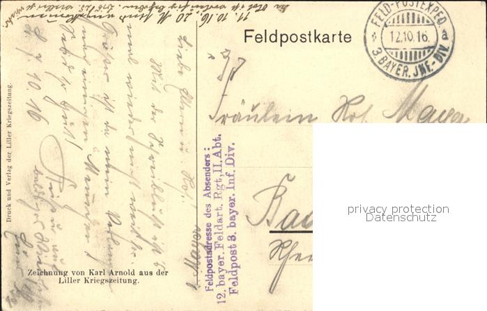 32510002 alte Postkarte Militaria WK1 der Bayerische Maibaum in Flandern Kuenstler Karl Arnold postalisch gelaufen Feldpost Erhaltung siehe scans KatCode: 22300540540540