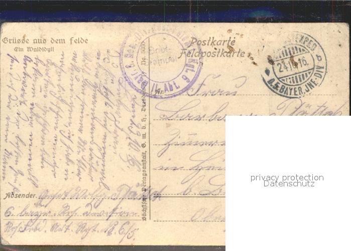 Militaria WK1 Grüsse aus dem Felde Waldidyl