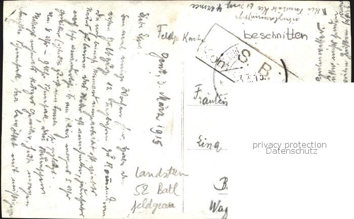 32490004 alte Postkarte Militaria WK1 Landsturm 52 Bataillon Feldgrau Gent postalisch gelaufen Feldpost Erhaltung siehe scans KatCode: 22300540540540