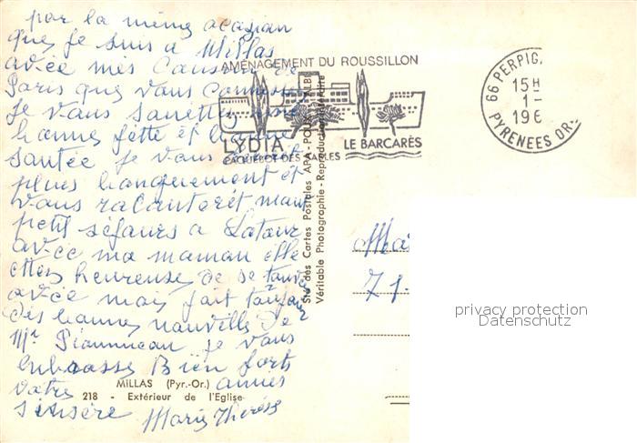 13582084 Millas Extérieur de l’Eglise postalisch gelaufen Erhaltung siehe scans [FriedD77] carte postale Frie Katcode 11170066266108