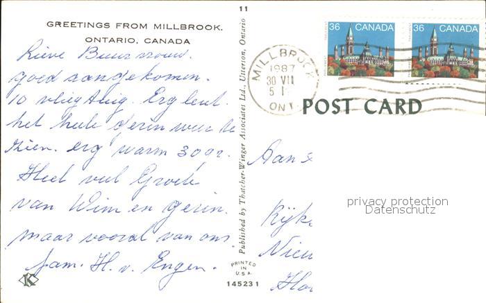 old postcard Millbrook Ontario Lake postalisch gelaufen Erhaltung siehe scans