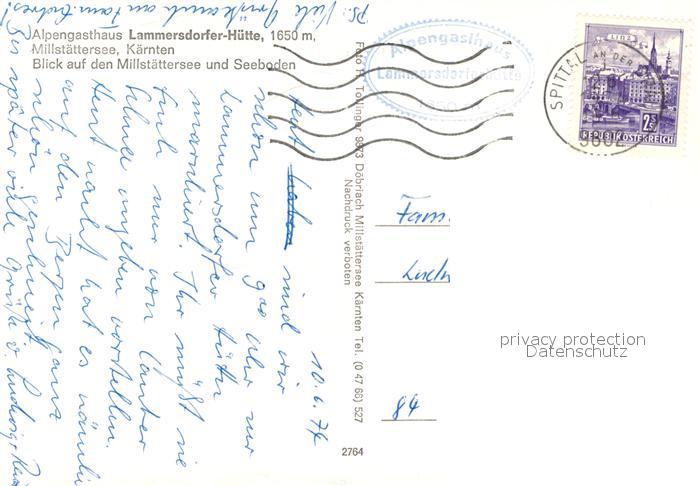 73360270 alte Postkarte Millstaettersee Alpengasthaus Lammersdorfer Huette mit Seeboden postalisch gelaufen Erhaltung siehe scans [WerneD78] KatCode: 11390