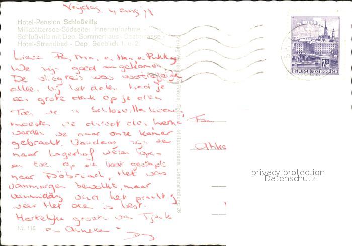 72022924 alte Postkarte Millstaettersee Hotel Pension Schlossvilla postalisch gelaufen Erhaltung siehe scans KatCode: 11390