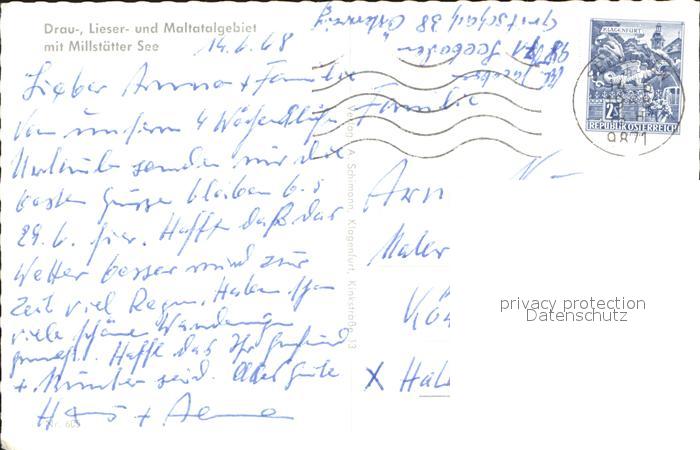 72137992 alte Postkarte Millstaettersee und Umgebung aus der Vogelperspektive Draugebiet Liesergebiet Maltatalgebiet Radstaedter Tauern postalisch gelaufen Erhaltung siehe scans KatCode: 11390