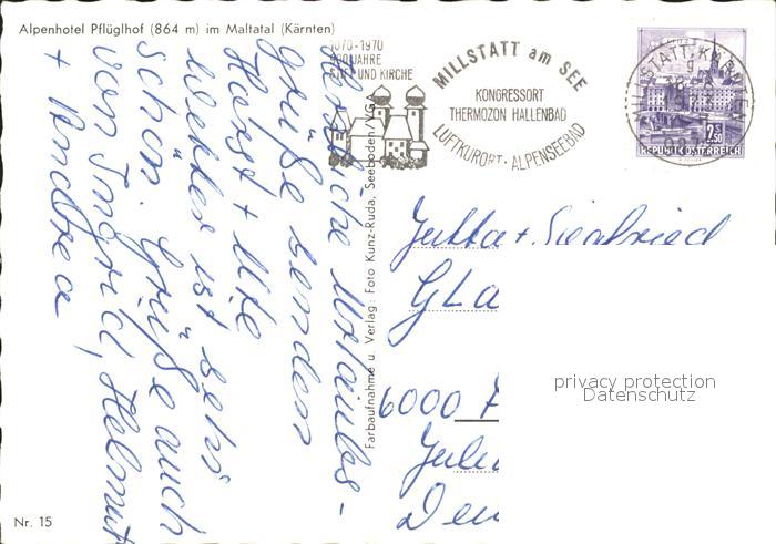 42923738 alte Postkarte Millstatt Kaernten Pflueglhof Malatal Wasserfall Muehle Ponys postalisch gelaufen Erhaltung siehe scans [WerneD48] KatCode: 11390212020620
