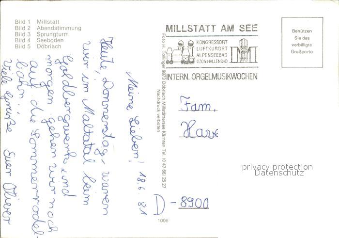 72438117 alte Postkarte Millstatt Millstaettersee Abendstimmung Sprungturm Seeboden Doebriach postalisch gelaufen Erhaltung siehe scans KatCode: 11390212020620