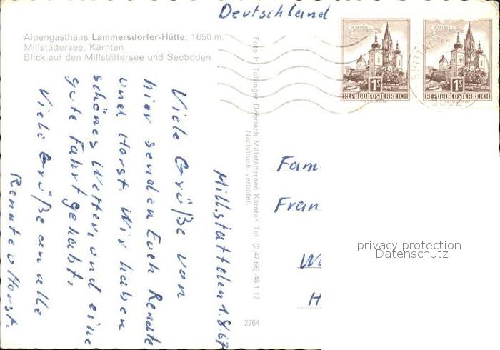 72439031 alte Postkarte Millstatt Millstaettersee Alpengasthaus Lammersdorfer-Huette postalisch gelaufen Erhaltung siehe scans KatCode: 11390212020620