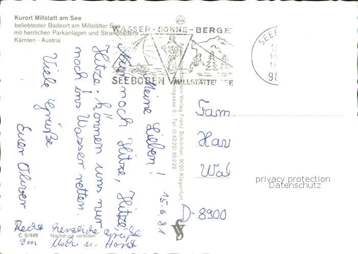 72438109 alte Postkarte Millstatt Millstaettersee Fliegeraufnahme See Parkanlagen Strandbaeder postalisch gelaufen Erhaltung siehe scans KatCode: 11390212020620
