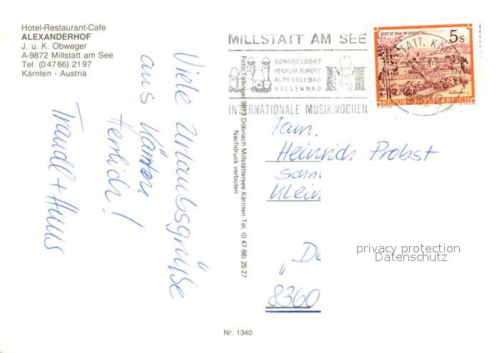 72693511 alte Postkarte Millstatt Millstaettersee Hotel Alexanderhof Cafe postalisch gelaufen Erhaltung siehe scans [KathaD79] KatCode: 11390212020620