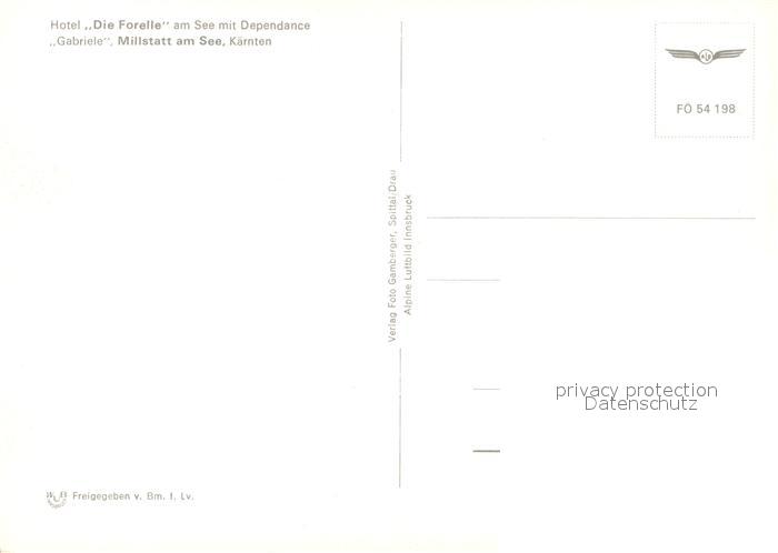 73517942 Millstatt Millstaettersee Hotel Die Forelle mit Dependance Fliegeraufnahme postalisch nicht gelaufen Erhaltung siehe scans [FriedD77] KatCode: 11390212020620