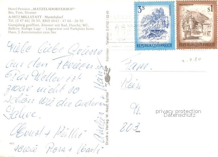 73197047 alte Postkarte Millstatt Millstaettersee Hotel Pension Matzelsdorferhof postalisch gelaufen Erhaltung siehe scans [KathaD81] KatCode: 11390212020620