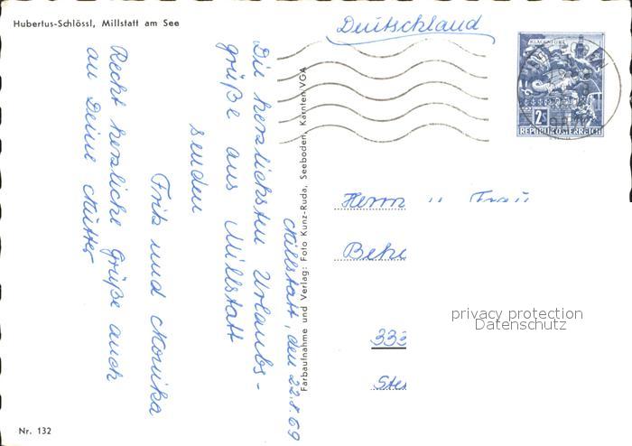 72292970 alte Postkarte Millstatt Millstaettersee Hubertusschloessl postalisch gelaufen Erhaltung siehe scans KatCode: 11390212020620