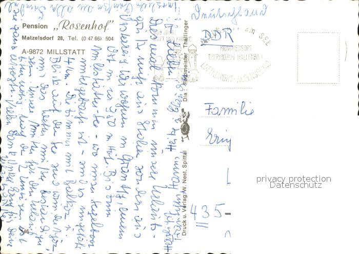 72411799 alte Postkarte Millstatt Millstaettersee Pension Rosenhof Gaststube postalisch gelaufen Erhaltung siehe scans KatCode: 11390212020620