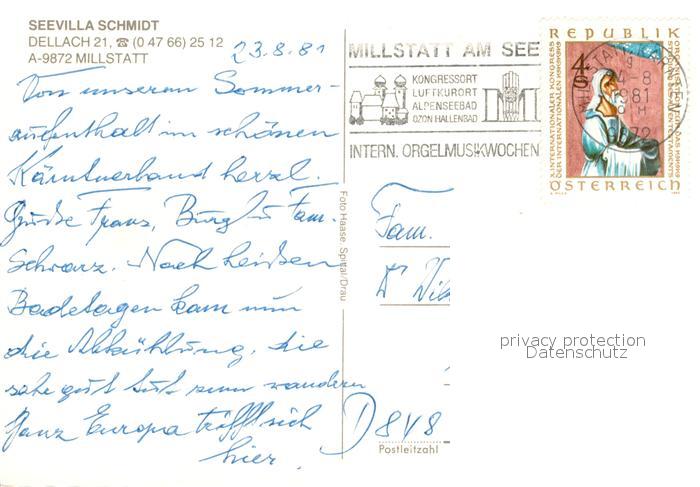 73176152 alte Postkarte Millstatt Millstaettersee Seevilla Schmidt postalisch gelaufen Erhaltung siehe scans [NatalD47] KatCode: 11390212020620