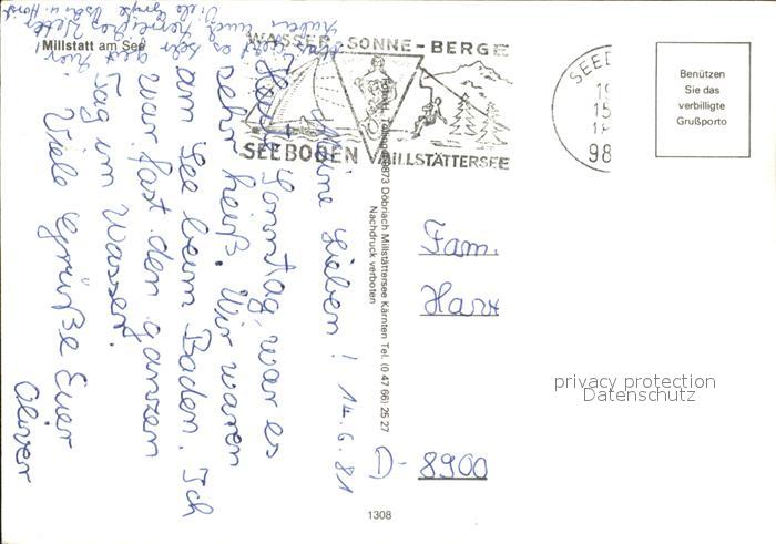 72438106 alte Postkarte Millstatt Millstaettersee Stadtplatz mit Brunnen postalisch gelaufen Erhaltung siehe scans KatCode: 11390212020620
