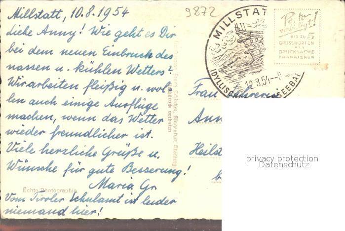 71541610 alte Postkarte Millstatt Millstaettersee Teilansicht postalisch gelaufen Erhaltung siehe scans KatCode: 11390212020620