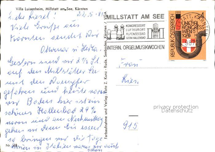 72517891 alte Postkarte Millstatt Millstaettersee Villa Luisenheim postalisch gelaufen Erhaltung siehe scans KatCode: 11390212020620