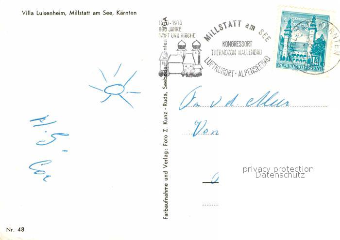 72901810 alte Postkarte Millstatt Millstaettersee Villa Luisenheim postalisch gelaufen Erhaltung siehe scans [AndreD76] KatCode: 11390212020620