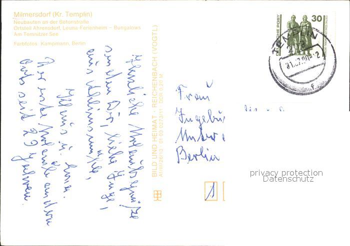 72375092 alte Postkarte Milmersdorf Uckermark Neubauten Betonstr OT Ahrensdorf Leuna Ferienheim Am Temnitzer See postalisch gelaufen Erhaltung siehe scans KatCode: 11110012073396