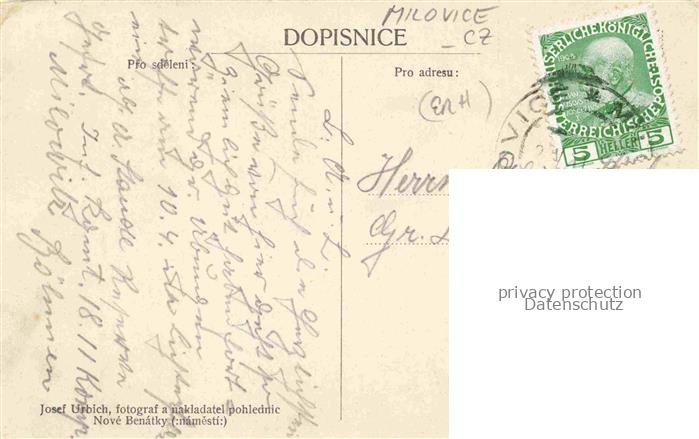 74024571 old postcard Milovic Milovice Milowitz CZ Vojenske baraky Vojenske strelnice postalisch gelaufen Erhaltung siehe scans [WerneD78] KatCode: 11520