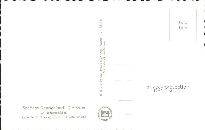 71838334 Milseburg Kapelle mit Kreuzgruppe und Schutzhuette Serie Schoenes Deutschland Die Rhoen postalisch nicht gelaufen KatCode: 11110006631012
