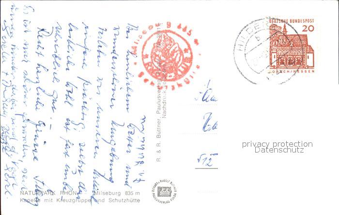 72277490 alte Postkarte Milseburg Naturpark Rhoen Kapelle Kreuzgruppe Schutzhuette postalisch gelaufen Erhaltung siehe scans KatCode: 11110006631012