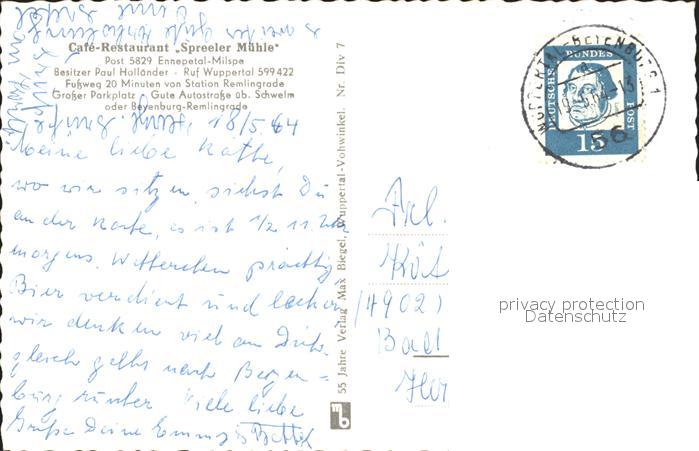 71982322 alte Postkarte Milspe Cafe Restaurant Spreeler Muehle postalisch gelaufen Erhaltung siehe scans KatCode: 11110005954008