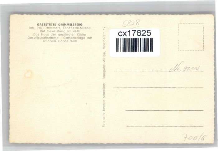 30725139 Milspe Gaststaette Grimmelsberg postalisch nicht gelaufen KatCode: 11110005954008