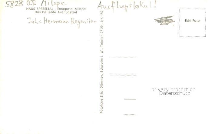 73696189 Milspe Haus Spreetal postalisch nicht gelaufen Erhaltung siehe scans [WerneD78] KatCode: 11110005954008