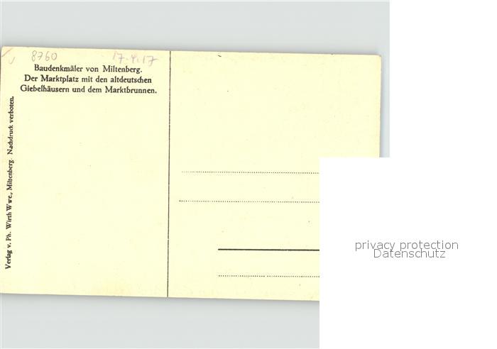 71850458 Miltenberg Main Baudenkmaeler Marktplatz altdeutsche Giebelhaeuser Fachwerk Brunnen postalisch nicht gelaufen Erhaltung siehe scans KatCode: 11110009676139