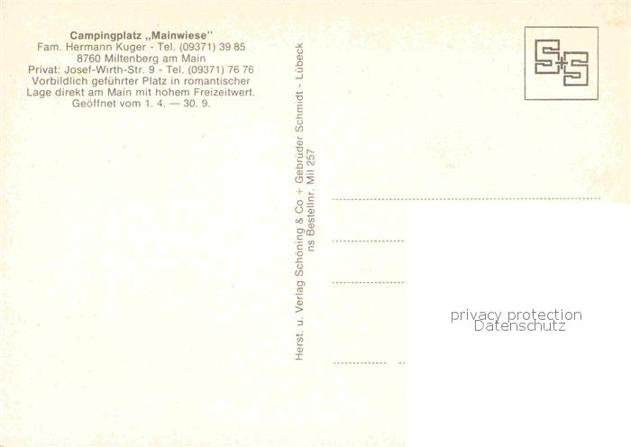 72803582 Miltenberg Main Campingplatz Mainwiese Panorama Schloss postalisch nicht gelaufen Erhaltung siehe scans [FriedD77] KatCode: 11110009676139