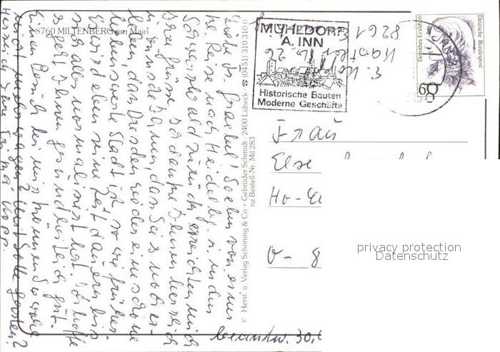 72354016 alte Postkarte Miltenberg Main Fachwerkhaeuser Stadttor Panorama postalisch gelaufen Erhaltung siehe scans KatCode: 11110009676139