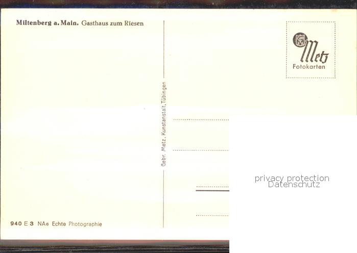 72148580 Miltenberg Main Gasthaus zum Riesen postalisch nicht gelaufen Erhaltung siehe scans KatCode: 11110009676139