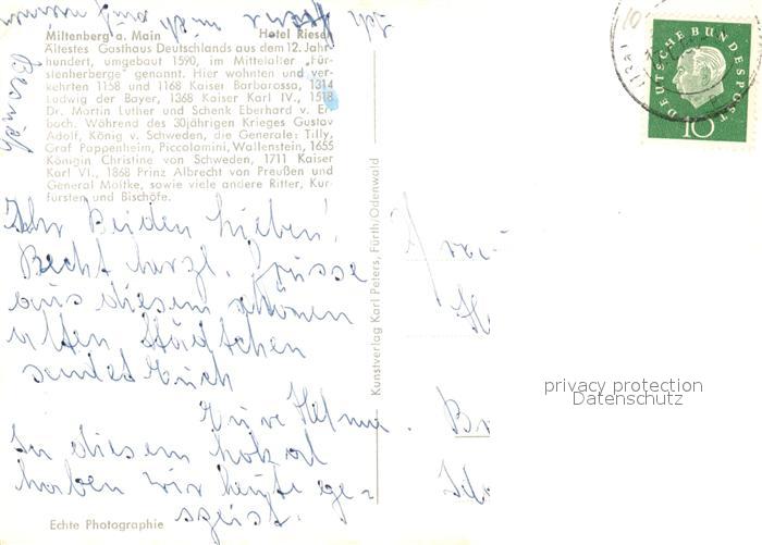 73040175 alte Postkarte Miltenberg Main Gasthaus postalisch gelaufen Erhaltung siehe scans [KathaD81] KatCode: 11110009676139