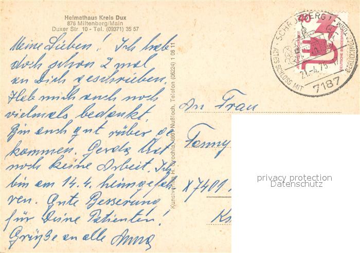 73747558 alte Postkarte Miltenberg Main Heimathaus Kreis Dux Marktplatz Bruecke Total Ansicht postalisch gelaufen Erhaltung siehe scans [WerneD78] KatCode: 11110009676139