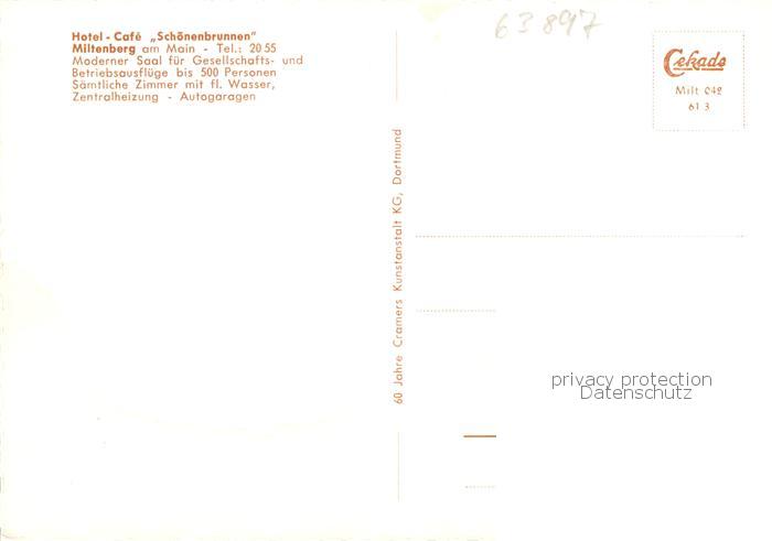 73865305 Miltenberg Main Hotel Cafe Schoenenbrunnen Restaurant postalisch nicht gelaufen Erhaltung siehe scans [FriedD77] KatCode: 11110009676139