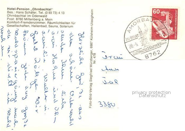 73047474 alte Postkarte Miltenberg Main Hotel Pension Ohrnbachtal Speisesaal Hallenbad postalisch gelaufen Erhaltung siehe scans [WerneD78] KatCode: 11110009676139